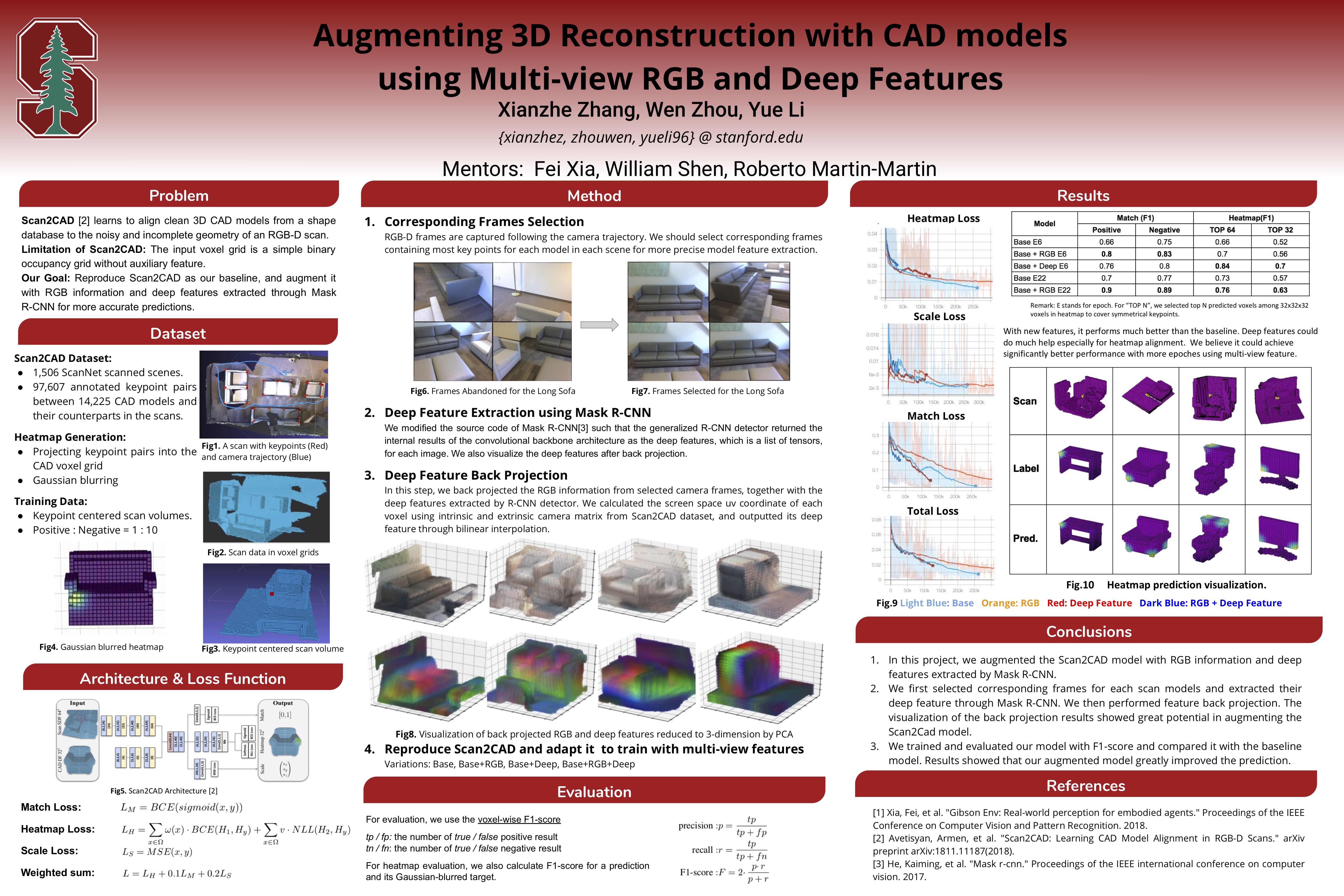 Reproduced Scan2CAD as our baseline, which learns to align 3D CAD models from a shape database to an RGB-D scan. Augmented it with multi-view RGB information and deep features extracted through Mask R-CNN.