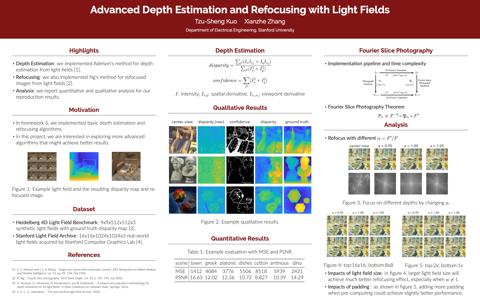 Implemented Fourier Slice Photography algorithm to generate refocused image and depth estimation in MatLab on 4D Light Field Benchmark dataset.